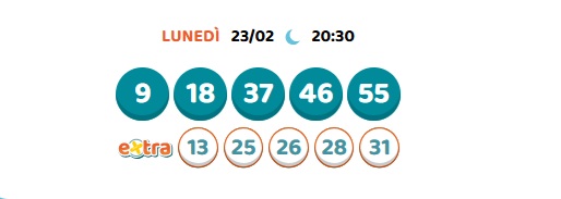 La combinazione vincente di sabato 21 febbraio è: