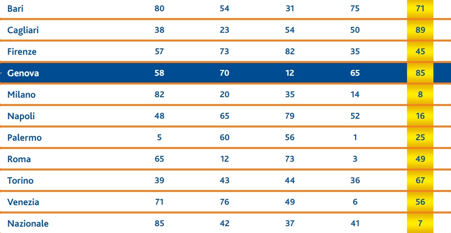 E’ previsto anche il gioco su “Tutte”. In questo caso per vincere è sufficiente che la combinazione giocata esca su una qualsiasi ruota ad eccezione della Nazionale.