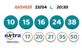 Con il Million Day c’è sempre una nuova opportunità per vincere un milione di euro o 100.000 euro con l’opzione Extra. Le estrazioni Million Day vengono effettuate ogni giorno, dal lunedì alla domenica, alle ore 13:00 e alle 20:30.